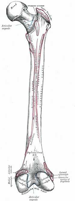 Norint nustatyti, kurios pusės yra šlaunikaulis, jį reikia laikyti taip, kad galva būtų nukrypusi į viršų ir į vidų, o šiurkščioji linija atgal.