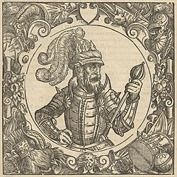 | Imaginacinis portretas Aleksandro Gvanjinio „Europos Sarmatijos aprašyme“, 1578 m. | |||||||||||