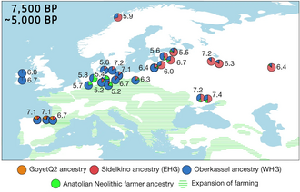 Pabaltijo vidurinio neolito pradžioje (~4300 m. pr. m. e.) Uralo regione prasidėjęs staigus klimato atšalimas privertė ten gyvenusius VIII genetinės grupės atstovus finougrus patraukti į vakarus – į šiltesnius šiaurės rytų Europos kraštus. Archeologijoje tai siejame su šukinės duobelinės keramikos kultūros (V–II tūkst. pr. m. e.) plitimu. Šios kultūros atstovai (lyvių, estų, suomių, karelų protėviai) įsitvirtino į šiaurę nuo būsimojo baltų arealo ir atnešė savo genetinį indėlį. Šių dienų Lietuvoje „finougrišką“ genetinę komponentę atitinka genetinė haplogrupė N3.