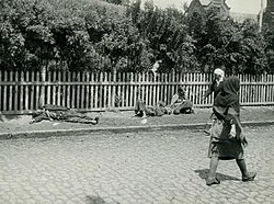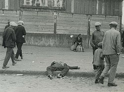 Praeiviai ir nuo bado mirusių valstiečių kūnai Charkivo gatvėje, 1933