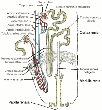 Nuo kapsulės prasideda I eilės vingiuotas kanaliukas, kuris pereina į tiesųjį. Tiesusis kanaliukas, leisdamasis ir kildamas sudaro Henlės kilpą, kurios pabaigoje yra II eilės vingiuotas kanaliukas. Pastarasis pereina į tiesųjį surenkamąjį kanaliuką (jau nebepriklauso nefronui), kuris atsiveria piramidės spenelyje.