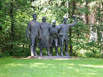 Paminklas „Keturi komunarai“ (bronza; skulptoriai N. Petrulis ir B. Vyšniauskas), pastatytas 1973 m. prie Ramybės parko Kaune, XX a. pabaigoje atvežtas į Grūto parką.