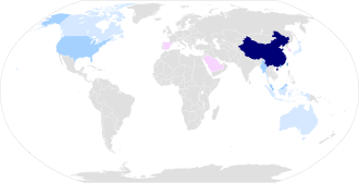 KalbamaKinijoje, Taivane, Singapūre, Indonezijoje, Malaizijoje, kitose kinų emigrantų bendruomenėse visame pasaulyje
