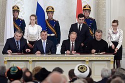 Kovo 16 d. įvykus referendumui, 96,8 balsavusiųjų pasisakė už Krymo prijungimą prie Rusijos. Po dviejų dienų, kovo 18 d., Rusijos Federacija su naująja Krymo vyriausybe pasirašė Krymo perdavimo Rusijai dokumentus. Krymo teritorijoje suformuotas naujas Rusijos administracinis vienetas – Krymo respublika. Nei Krymo valdžia, nei referendumas, nei perdavimo dokumentai nėra pripažinti Ukrainos, Europos Sąjungos ir JAV.