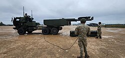 Lietuvos salvinės artilerijos baterijos karių M142 HIMARS mokymai Estijoje.