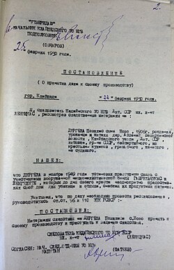 | 1948 | gegužės 22–27 d. (operacija Vesna) | 40002 (per visus 1948 metus – beveik 44 000) | Krasnojarsko kraštas, Irkutsko sritis, Buriatija-Mongolija |