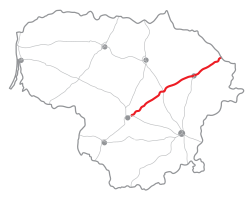 Kelias prasideda Kaune, Savanorių pr. Eina Kauno, Jonavos, Ukmergės, Utenos ir Zarasų rajonų savivaldybių teritorijomis. Svarbiausios gyvenvietės – Karmėlava, Jonava, Ukmergė, Utena, Zarasai.