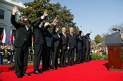 - 2002 m. lapkričio 21 d. Prahoje septynios NATO kandidatės – Bulgarija, Estija, Latvija, Lietuva, Rumunija, Slovakija ir Slovėnija – pakviestos pradėti derybas su Šiaurės Atlanto Sutarties Organizacija dėl narystės.