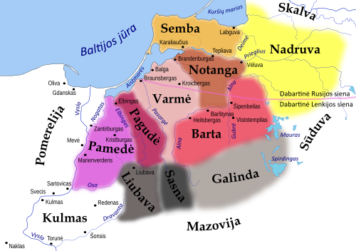 Nadruva, Semba, Notanga, Varmė, Barta, Pagudė, Pamedė, Kulmo žemė, Liubava, Sasna, Galinda