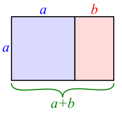 a+ba=ab{\displaystyle {\frac {a+b}{a}}={\frac {a}{b}}}{\displaystyle {\frac {a+b}{a}}={\frac {a}{b}}}