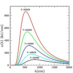 Tλmax=2,898...×106 nm K.{\displaystyle T\lambda _{\mathrm {max} }=2,898...\times 10^{6}\ \mathrm {nm\ K} .\,}{\displaystyle T\lambda _{\mathrm {max} }=2,898...\times 10^{6}\ \mathrm {nm\ K} .\,}