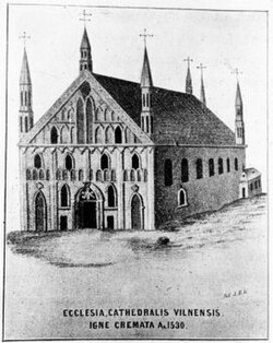XVI a. ir vėliau pamokslai sakyti lietuviškai. 1530 m. katedra degė. 1534 m. buvo pastatyta nauja Karališkoji koplyčia. 1534 m. katedros atstatymo darbams vadovavo Romos architektas Bernardinas Džanotis. Po jo mirties katedrą restauravo Džiovanis Činis. Katedra dar kartą degė, jos remontas buvo baigtas tik 1557 m. Perstatytos kai kurios koplyčios, išmūryti skliautai, įrengtos naujos kriptos. Iš renesansinės katedros iki šių dienų išliko Valavičių koplyčios sienos, Vyskupų koplyčios sienų apatinės dalys, LDK kanclerio Alberto Goštauto bei vyskupo Povilo Alšėniškio antkapinės renesansinės plokštės.