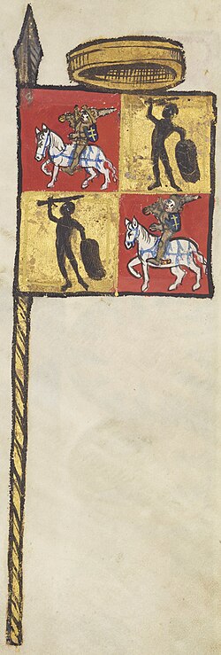 Vytauto Didžiojo vėliava su stovinčiu Kęstutaičių riteriu ir Vyčiu, naudota Konstanco susirinkime 1416 metais.