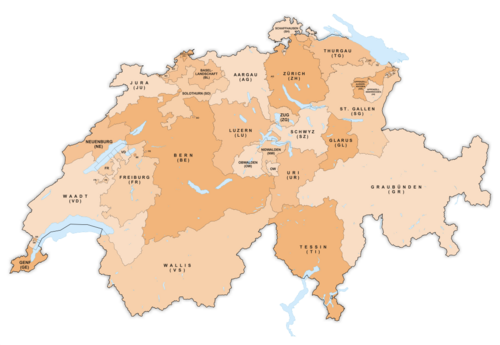 VėliavaKantonasĮstojimo į konfederaciją metaiSostinėGyventojų sk.Plotas, km²Gyventojų tankumas, žm./km²Oficiali kalba