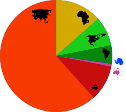 | Azija | 43 810 000 | 3 800 000,000 | 60 % | 86,7 |