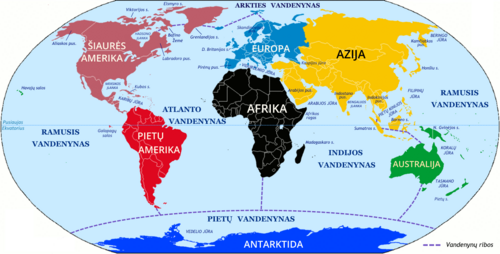 Pastaba. Kai kur Europa ir Azija yra sujungiamos į vieną žemyną − Euraziją.